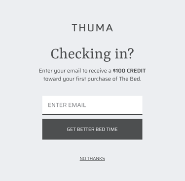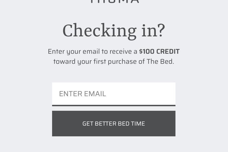 Thuma offers their website visitors to sign up for their newsletters and receive $100 off. This was a really easy signup and I received my $100 coupon immediately.